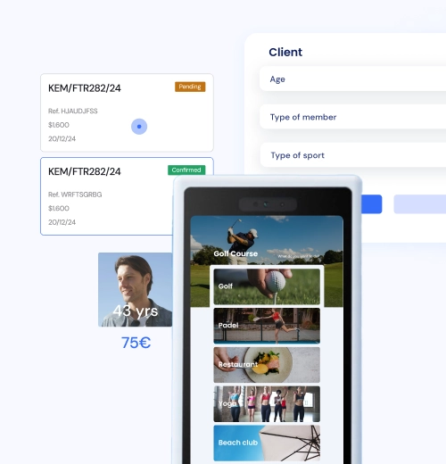 - Apóyate en dispositivos Hardware como el kiosko digital para que los golfistas realicen su check-in de forma autónoma.