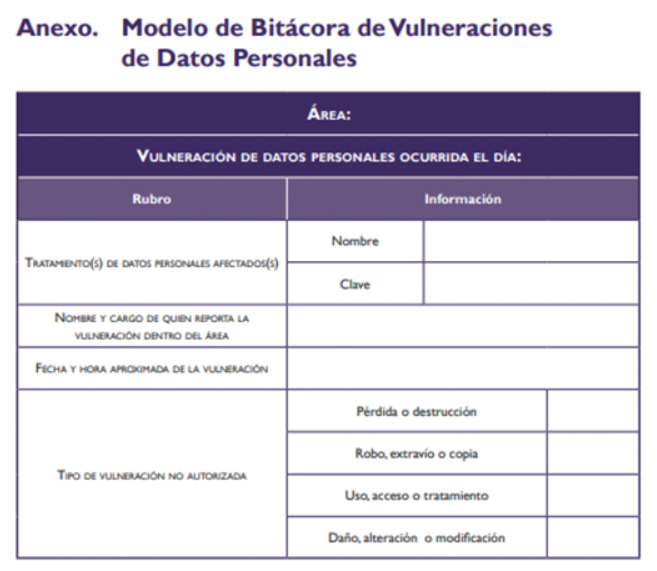Una vez implementadas las acciones preventivas, se deberá documentar, a través de una bitácora de vulneraciones, la siguiente información:
