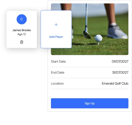 • Let families sign up for golf camps from home in just a few clicks, with no calls or manual admin