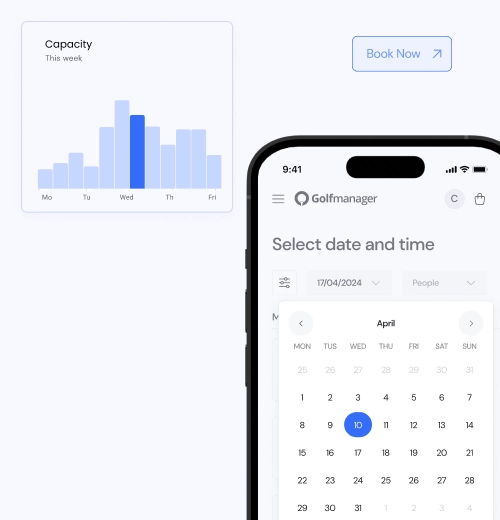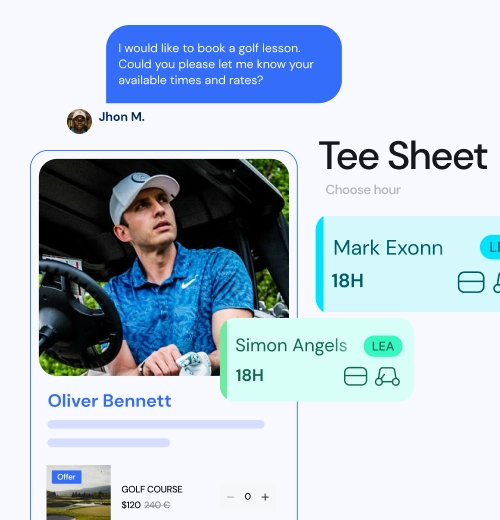 - Permita que seus jogadores reservem aulas, horários de tee, outros esportes ou atividades por meio do seu site ou app.