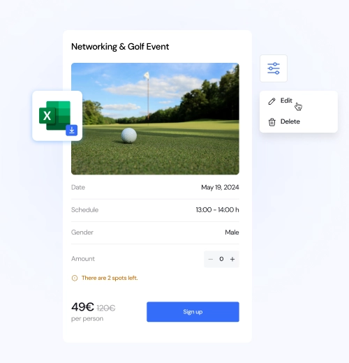 Crea y gestiona eventos de cualquier tipo, publícalos en tu web y app y permite a tus clientes reservar y pagar online de forma sencilla.