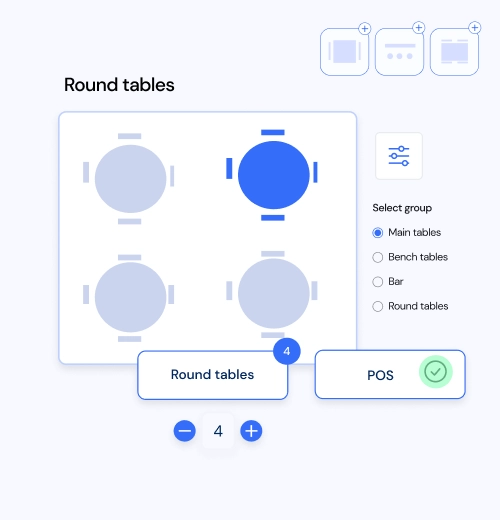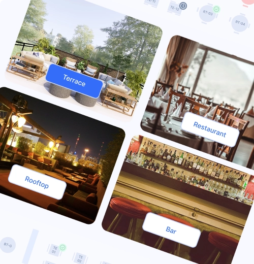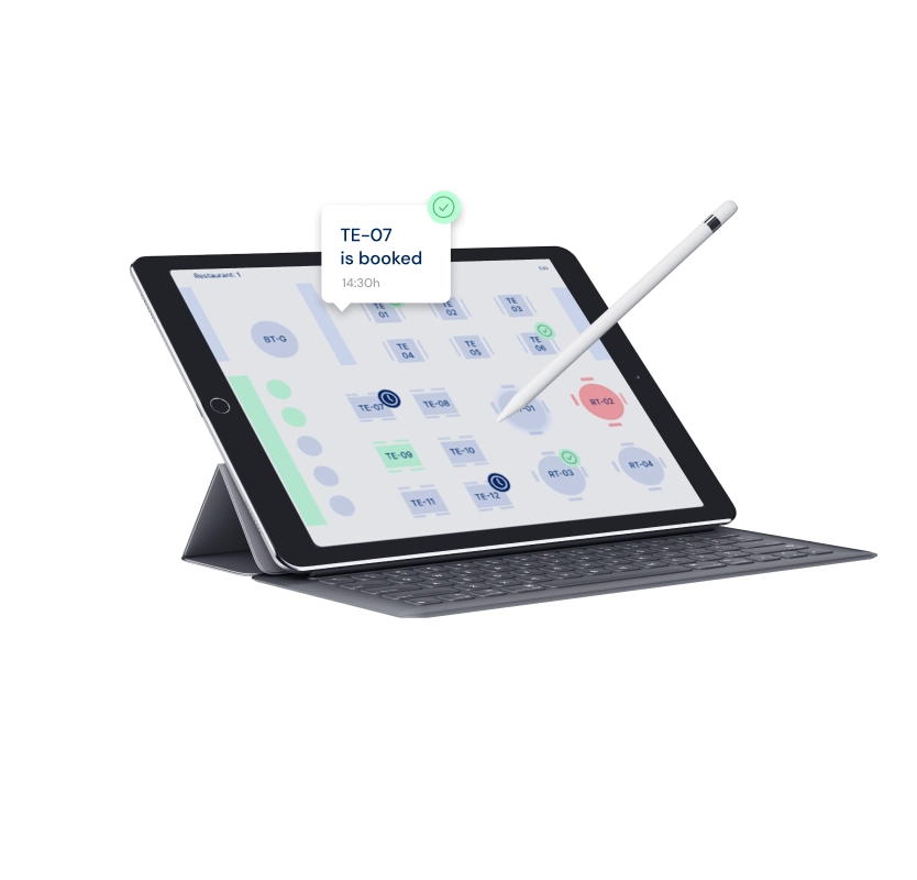 Organiza tu restaurante con un mapa de mesas intuitivo y personalizando sincronizando las reservas en tiempo real y adapta los elementos a tu negocio de forma rápida y efectiva.