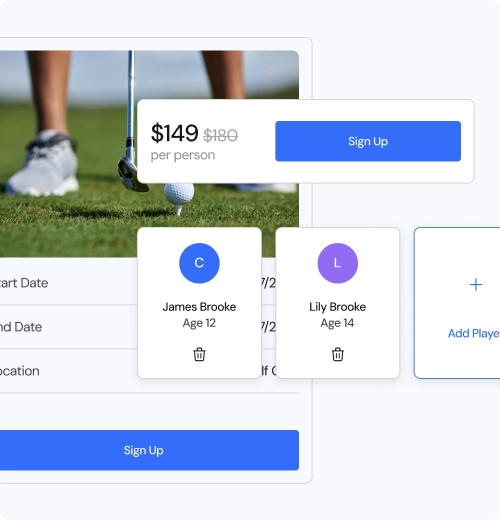 • Let families sign up for golf camps from home in just a few clicks, with no calls or manual admin