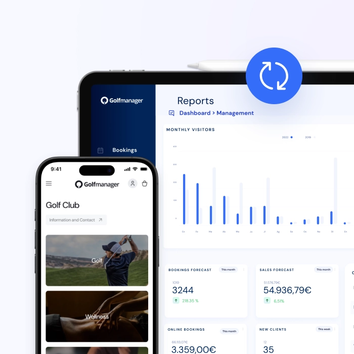 La app Golfmanager se integra perfectamente con tu software de gestión, garantizando que todas las reservas y actividades estén siempre sincronizadas.